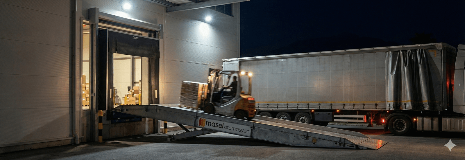 Masel Otomasyon olarak, depo ve lojistik operasyonlarınızın hızını ve güvenliğini artıran endüstriyel Hidrolik Yükleme Rampası çözümleri sunuyoruz. Tır veya kamyon kasası ile depo zemini arasındaki yükseklik farkını otomatik olarak eşitleyerek “köprü” görevi gören bu sistemler; forklift ve transpaletlerin kesintisiz, hızlı ve güvenli bir şekilde giriş-çıkış yapmasını sağlar, yükleme-boşaltma sürelerini %50’ye varan oranda kısaltır.